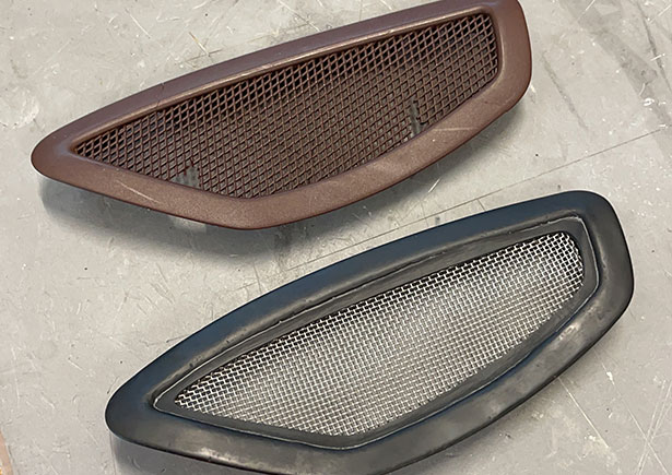 Infine, le bocchette sono state assemblate con la rete d'acciaio piegata e verniciata di nero, migliorando l'estetica e la robustezza strutturale rispetto alla parte originale.