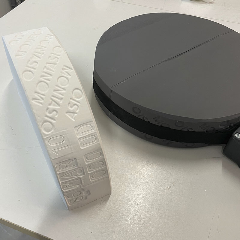 Per garantire la massima fedeltà geometrica siamo partiti da una forma di formaggio reale, sottoponendola a scansione 3D con uno scanner a luce strutturata (accuratezza ± 0,05 mm).