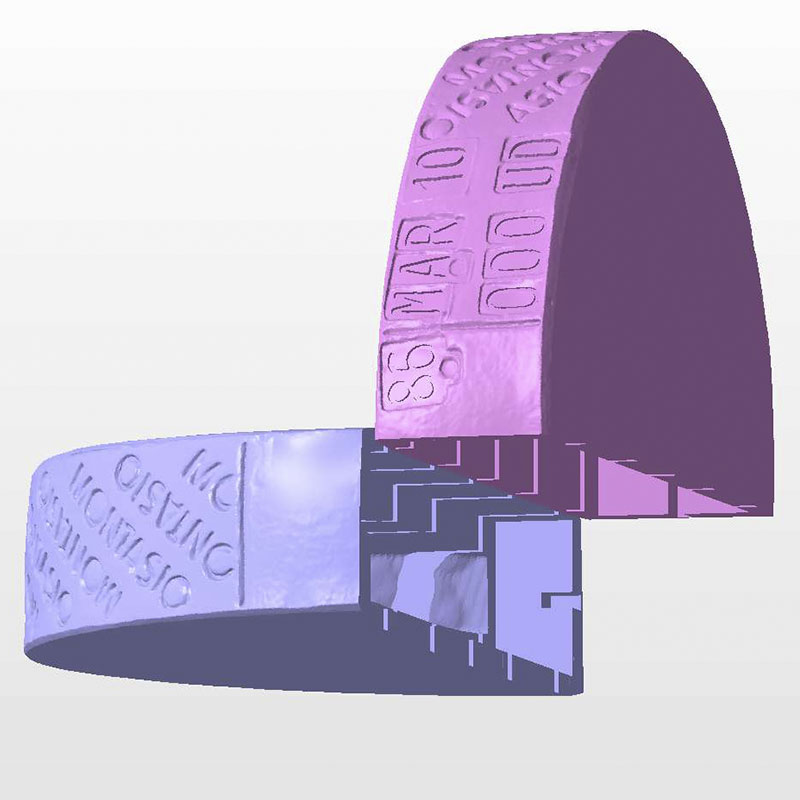 - Suddivisione in due emisfere: abbiamo “tagliato” la forma in due gusci simmetrici; in questo modo le superfici esterne restano prive di supporti e il dettaglio sul bordo risulta più pulito.