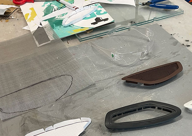 Una volta preparati i frame delle bocchette abbiamo utilizzato la tecnica del "cartamodello" per tagliare la rete d'acciaio con la sagoma della bocchetta; la rete è stata piegata per adattarsi alla forma stampata in 3D e successivamente verniciata di nero per conferirgli un aspetto più elegante e moderno, in linea con la bocchetta.