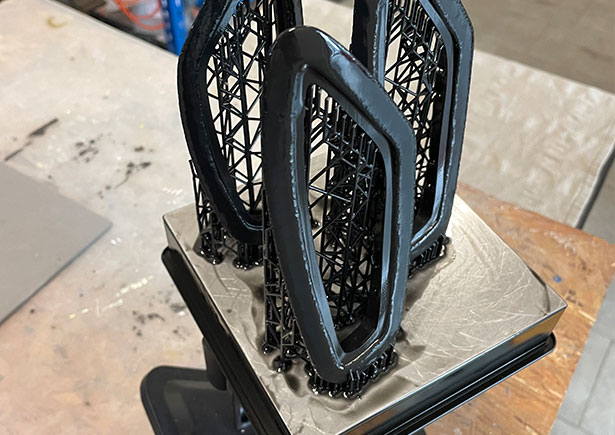 Terminato il lavoro di modifica delle mesh risultanti dalla scansione abbiamo stampato il frame della bocchetta in stereolitografia utilizzando la Black Resin di Formlabs sulla nostra Form3.